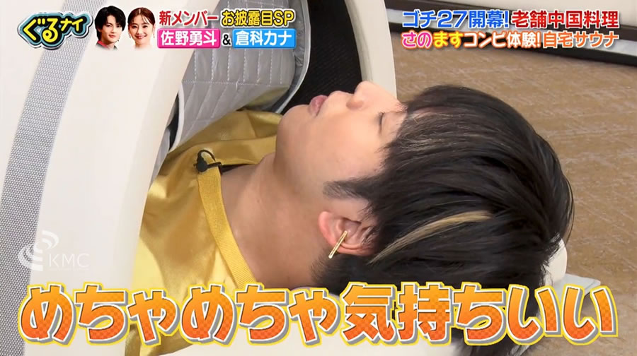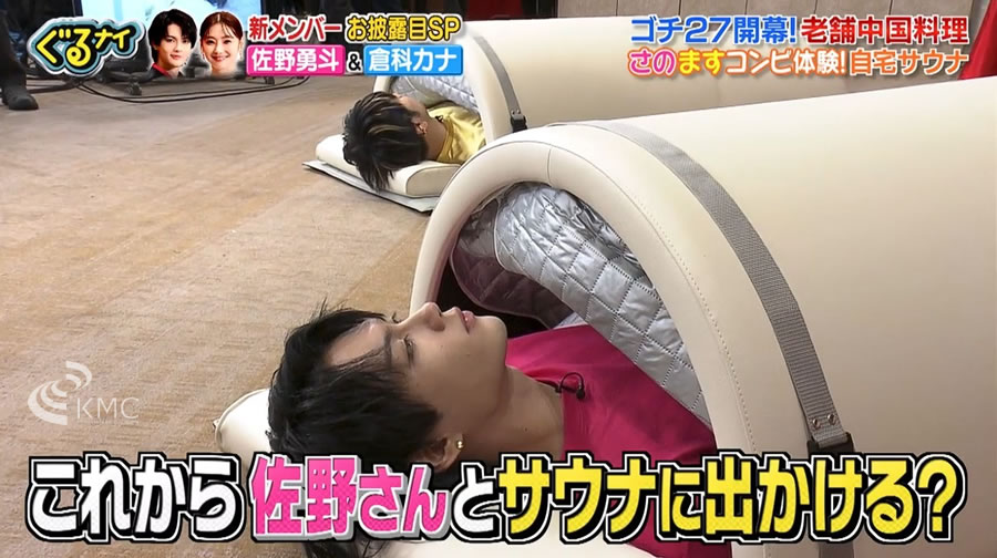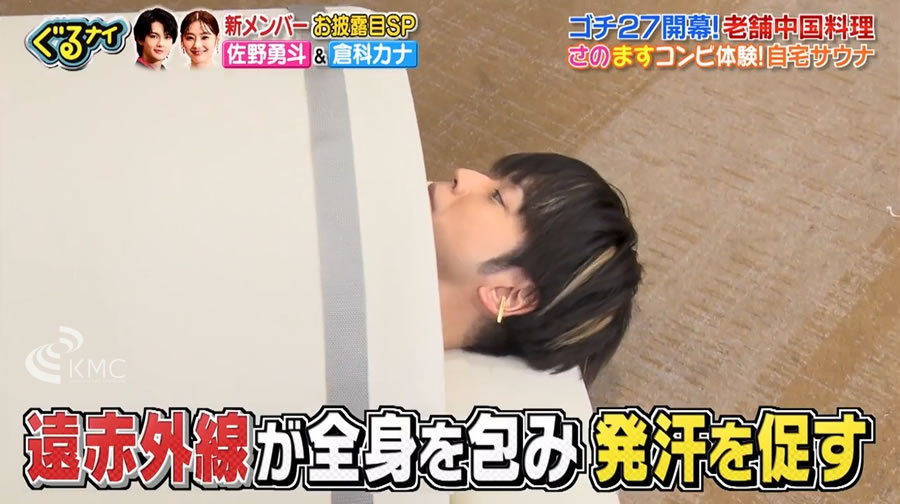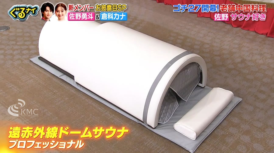 2026年1月23日 メディア紹介 日テレ「ぐるぐるナインティナイン」にて弊社のドームサウナをM!LKの佐野さんとNEWSの増田さんが体験されました。日テレ「ぐるぐるナインティナイン」1月22日(木)放送分にてボーカルダンスユニット『M!LK』の佐野勇斗さんとNEWSの“まっすー”こと増田貴久さんが弊社のドームサウナを体験されました。 佐野さんは最近サウナにハマっていてスタジオには自宅でも楽しめる最新のドームサウナ「プロフェッシャル」を用意され増田と佐野が体験されました。 【番組内容】ぐるぐるナインティナイン ゴチ新メンバー佐野勇斗&倉科カナが高額自腹の洗礼!?北村一輝も大ピンチ 【紹介された製品】遠赤外線ドームサウナ プロフェッショナル