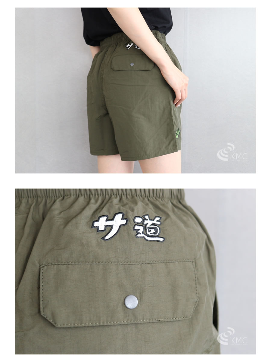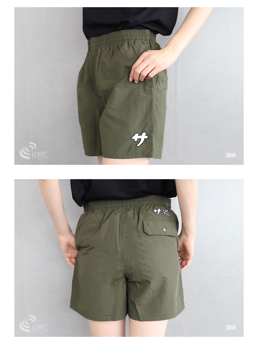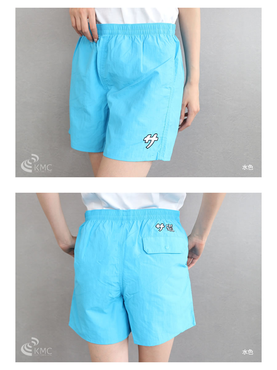 軽量で乾きやすいナイロン素材を使用したサウナ用ショートパンツ