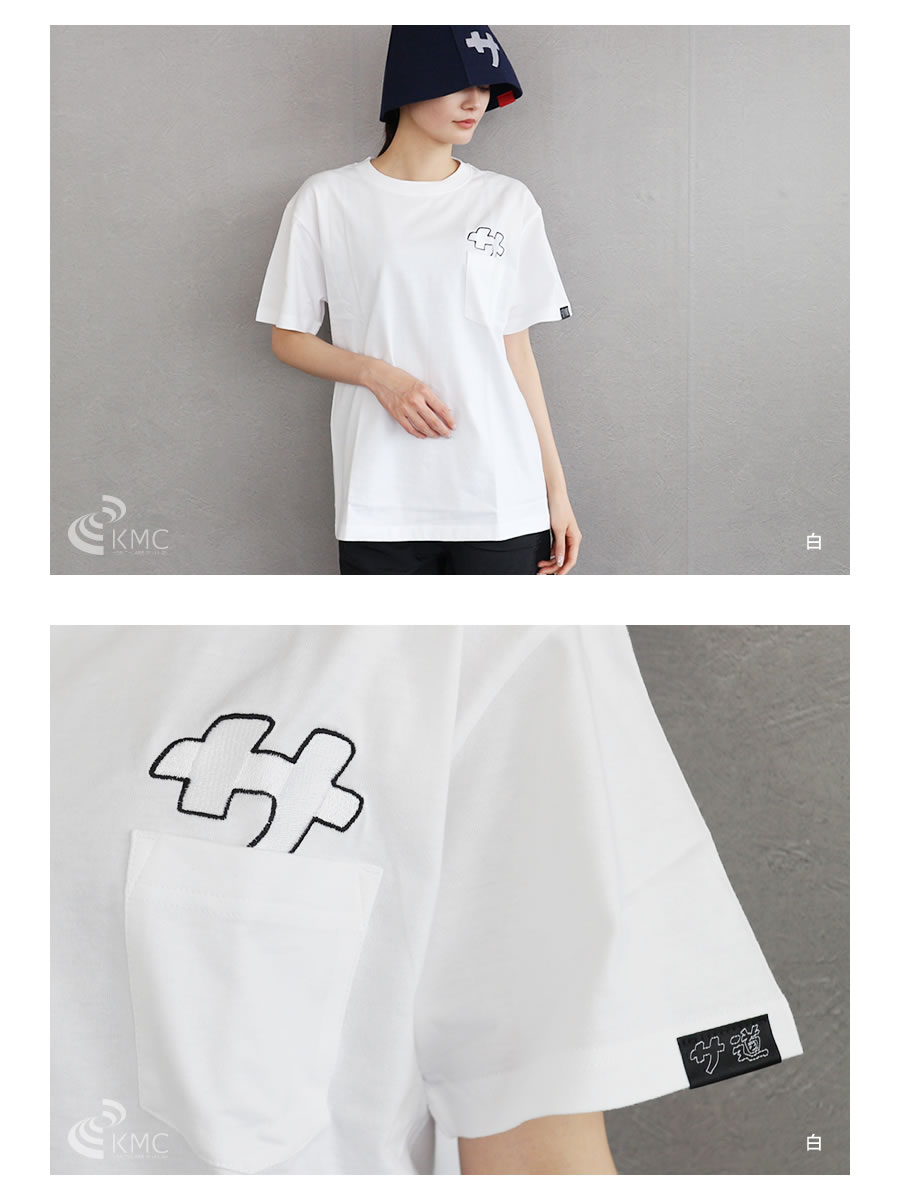 ポケットから顔を出す可愛い『サ』の刺繍をデザイン。一枚でさまになる5.6オンスのポケットTシャツ